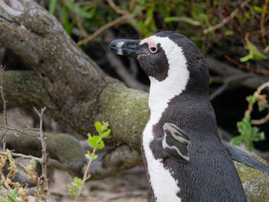 One reason to visit Simons Town is not the navy - but the colony of African Penguins that have made Boulders Beach their home. Raised walkways keep the public away from disturbing the penguins who shuffle back and forth among the sand dunes to their burrows.