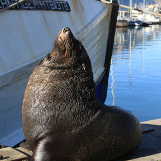 Views of Hout Bay a small fishing town (village?) south of Cape Town city centre. It's from here that you can take a 20 minute boat ride out to visit seal island (it's actually called Duiker Island). Once back on shore check out the local colour or maybe have snoek and chips at the region's most famous seafood restaurant Snoekies, on the quayside. There was even a performing seal on the quay when we visited!