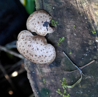 Even in the dimly lit understory of the native forest you can find an incredible range of flora - including these fungi amongst the leaf litter - this is constantly being turned over by the woodhen population.